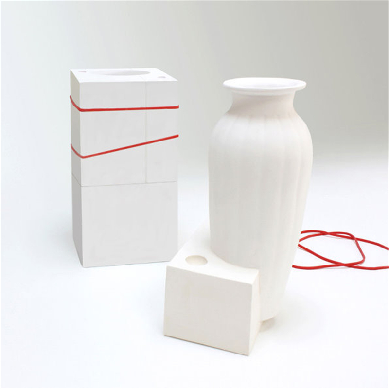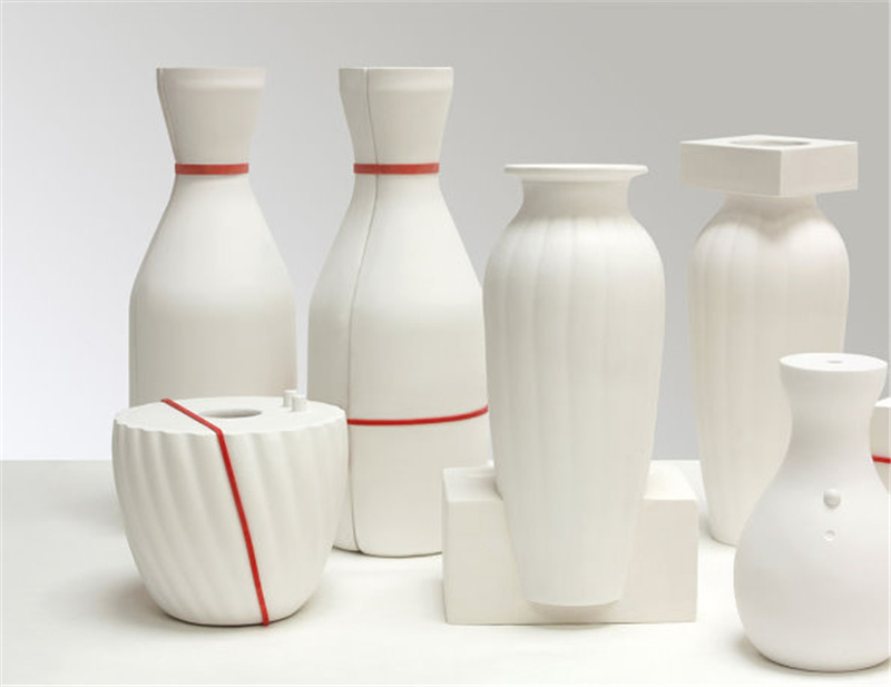石膏注漿成型的模具通常在使用后就被丟棄。這些白色優(yōu)美剛?cè)岵?jì)的花瓶從模具中來并表達(dá)出通常不為人們所見的模具之美。
